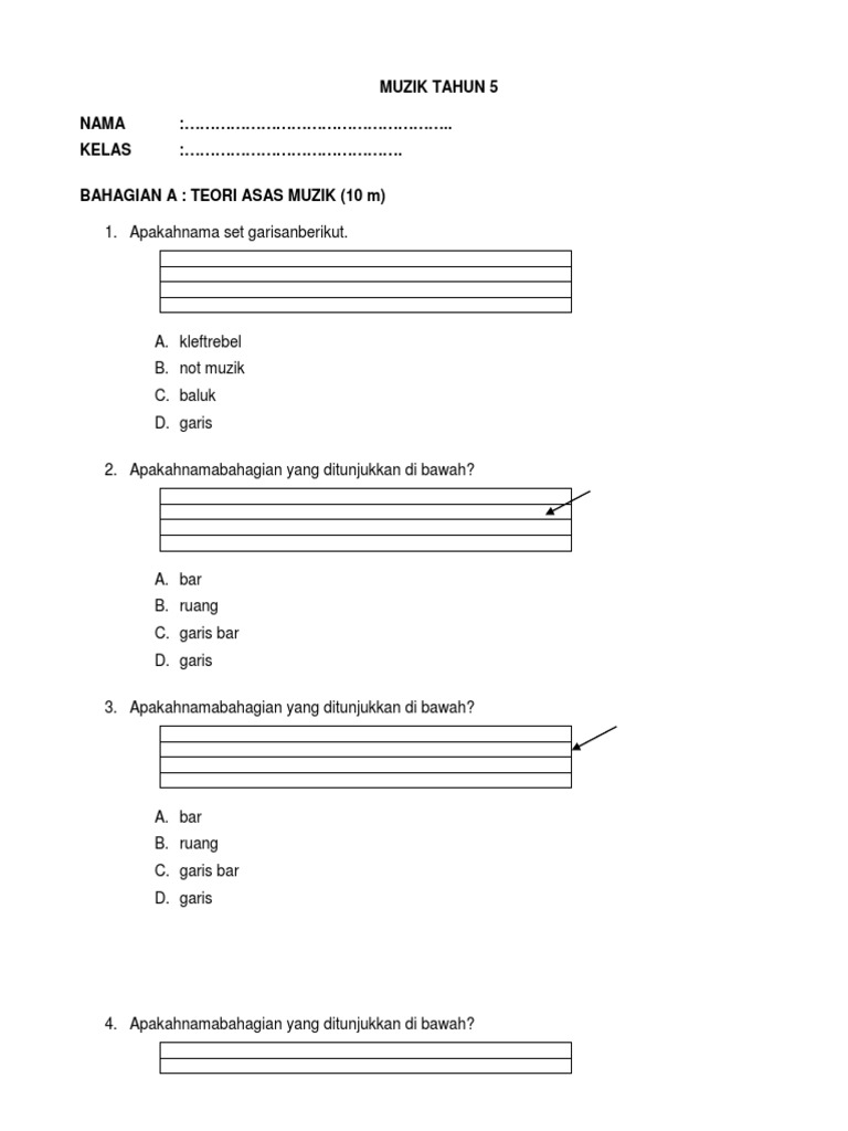 . Ujian Pertengahan Tahun Pendidikan Muzik Tahun 5. Kandungan CD 2 pula bertujuan untuk membantu guru dari aspek apresiasi muzik dan latihan pendengaran murid. Soalan ujian bulan mac semua subjek tahun 5 2020.
